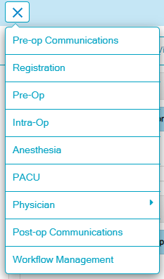 Tapping the menu icon will display the chart’s workflow areas. Different chart templates may have different workflow areas. Users may only have access to certain areas depending on their user permissions, which are configured by the Center’s system administrator. If a user does not have permissions for a workflow, a lock icon will display.