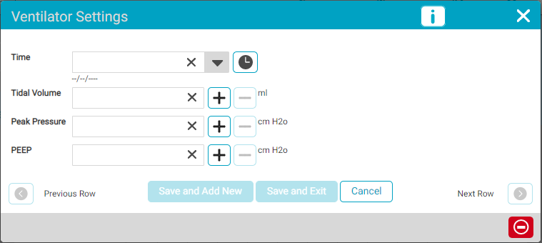 The ventilator settings Tidal Volume, Peek Pressure, and PEEP are now included in the table and in the Ventilator Settings grid view. They can be documented from and will display in both locations.