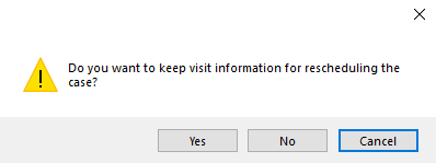 NOTE: if the user elects to save the visit data and there was a partially completed chart (pre-op call or other pre-admission data), the chart and its data will continue to exist in the database intended to be reused when the case is rescheduled. This can affect reporting and tasks since the chart still exists.