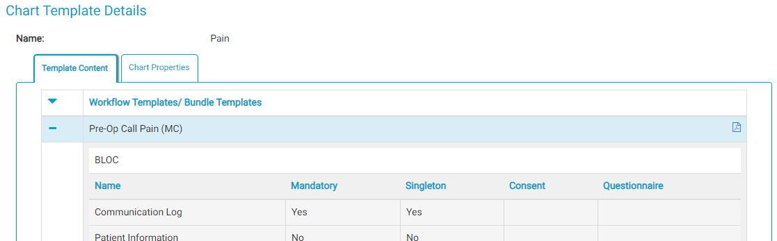 A blank PDF copy of a Chart Template can be viewed and printed from the Chart Templates page. Individual blank workflows can also be printed from the Chart Template Details page. Blank charts can be printed ahead of time and saved for downtime use.