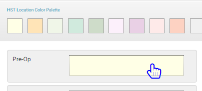 - On the Color Palate at the top of the map, drag and drop the new color to the desired location or anesthesia type. While dragging a color, the cursor will change to a blue gloved hand.